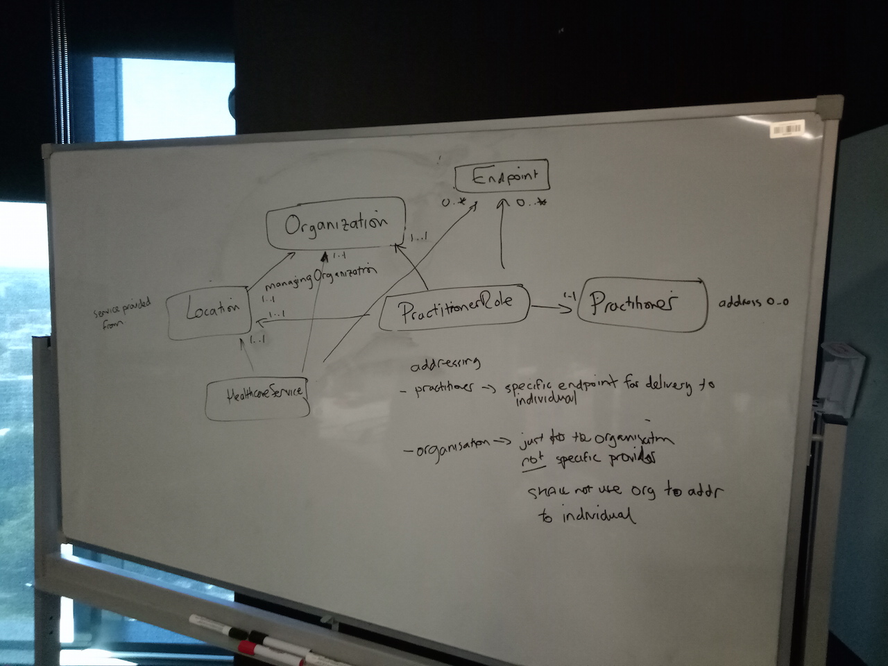 - Note: concerns on HealthcareService must have 1..1 Location (too constrained?)