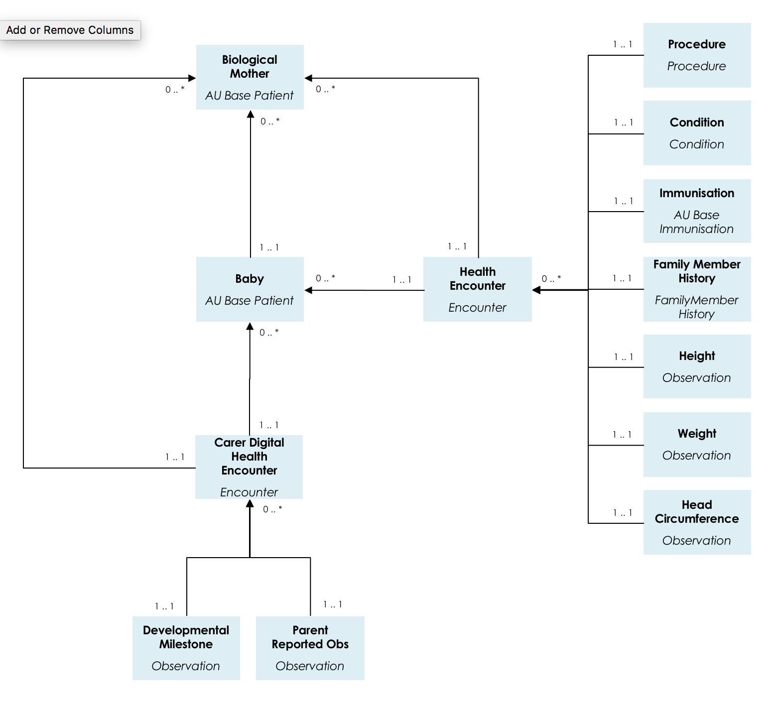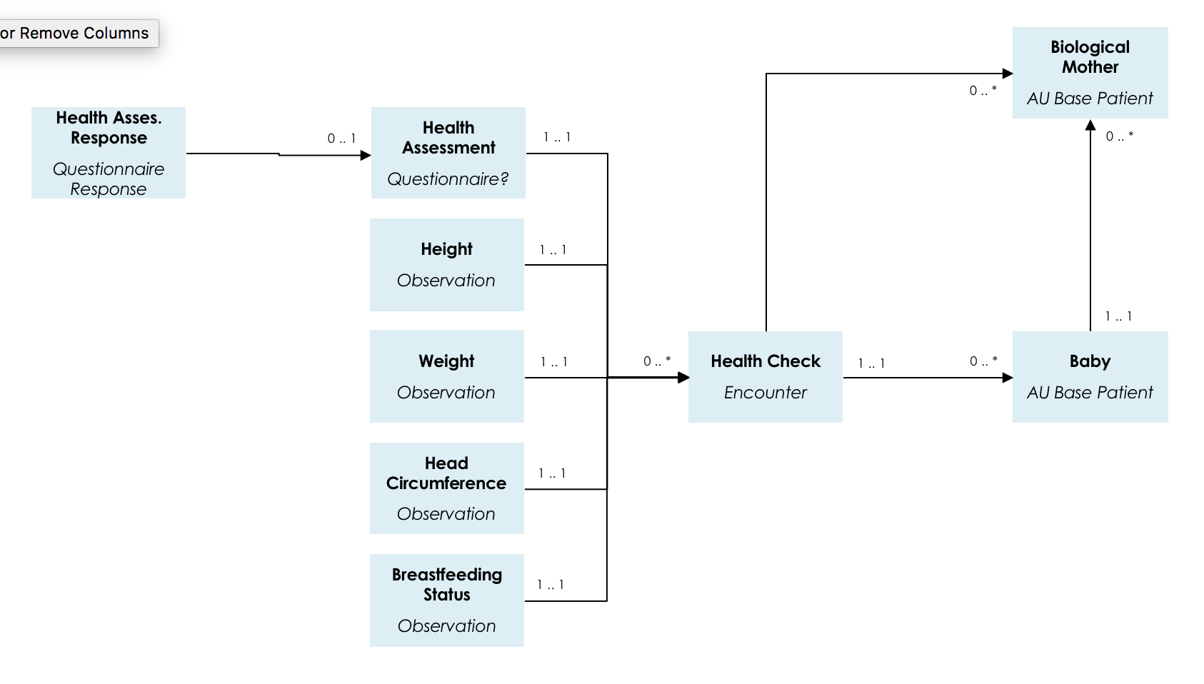 The following diagrams show the current proposed domain analysis model for the Child Health Working Group. It remains a work in progress.