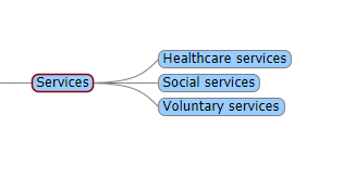 - recommendation is to introduce a handful of key concept groups under "services" (224930009), these are to cover eg.: