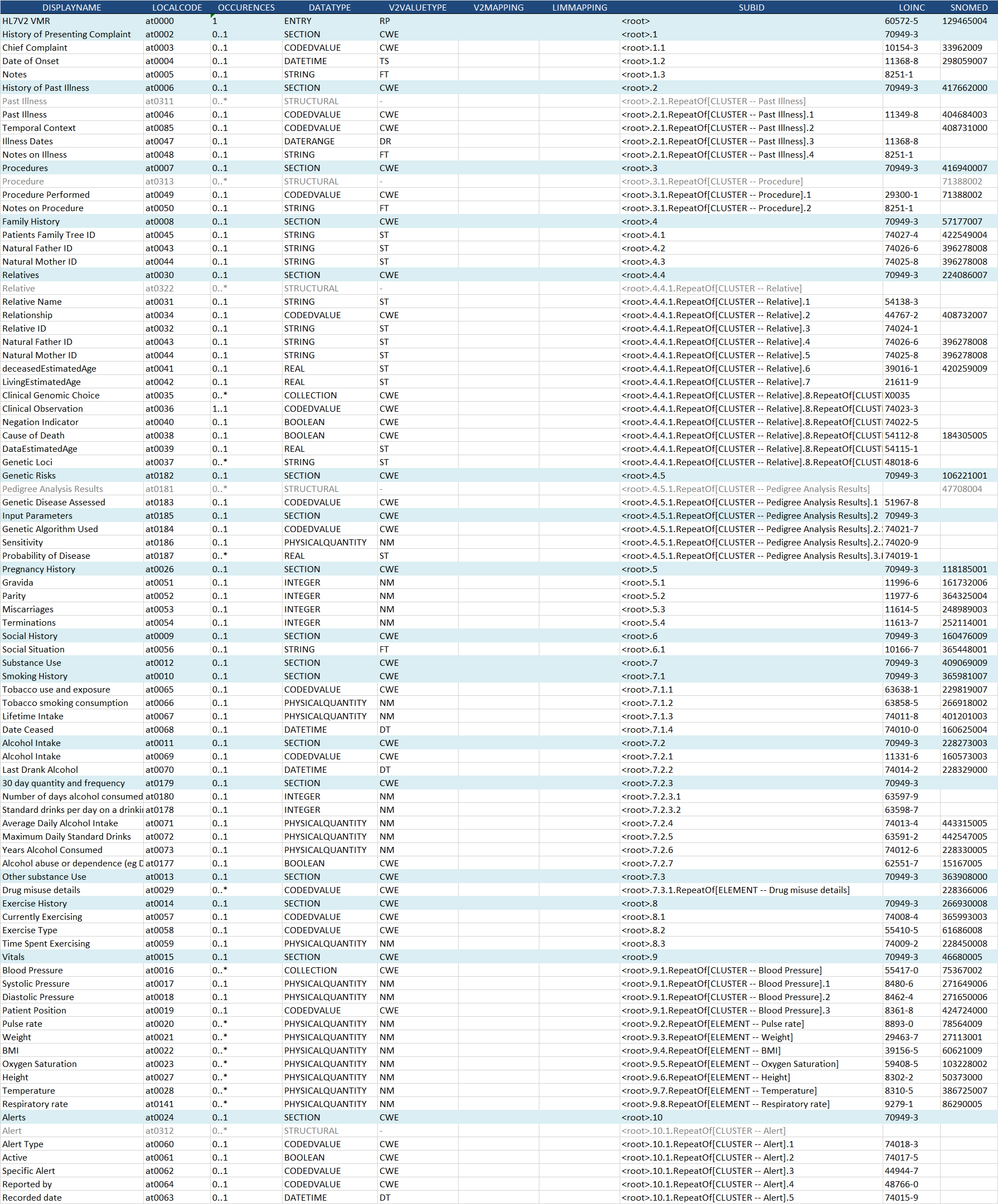 7.4.3 Fields for clinical history