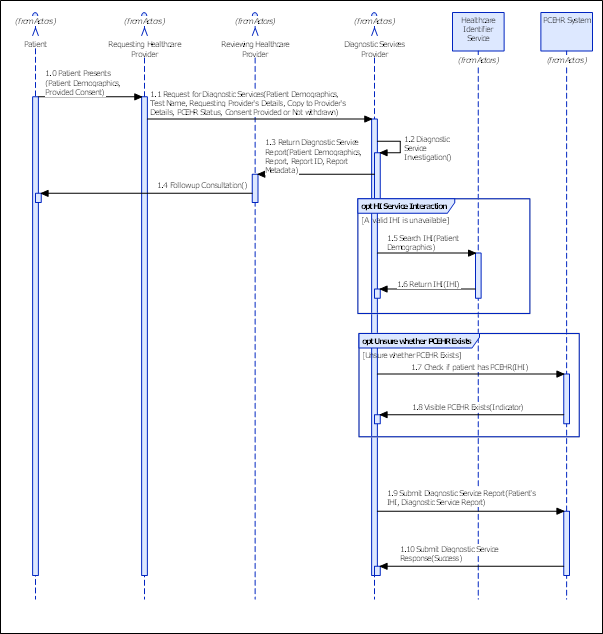 1.9 | Submit Diagnostic Service Report | If the patient has a PCEHR and the patient has not withdrawn consent the report is uploaded to PCEHR. | N/A |